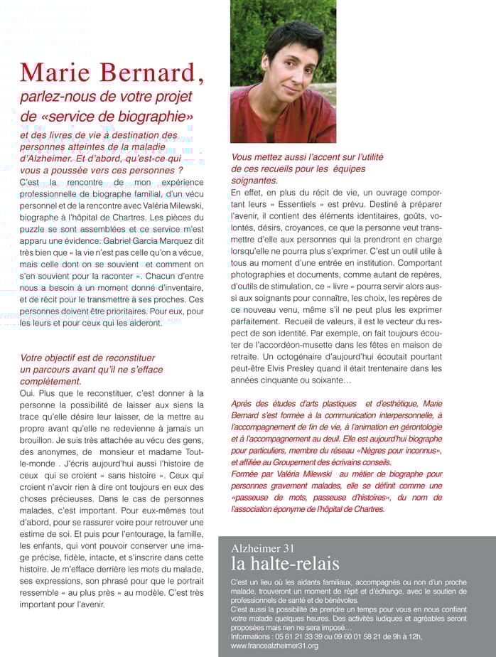 Dossier "Mieux vivre avec Alzheimer", "La Vie", 15 septembre 2016, p.16-27